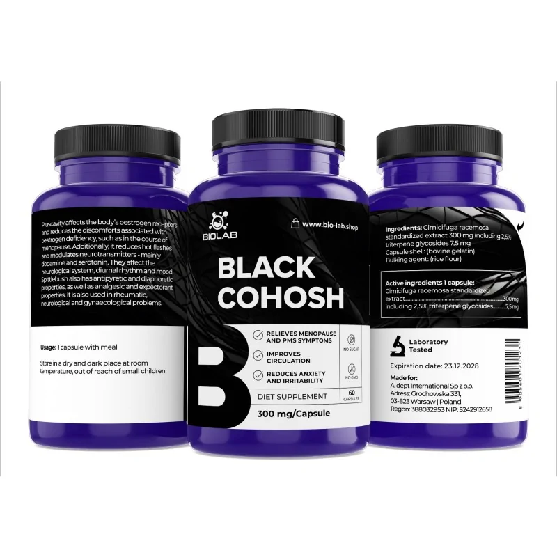 I principi attivi della radice hanno un effetto multidirezionale sull'organismo. Come supporto naturale pro-invecchiamento, l'estratto non solo aiuta a mantenere il benessere, ma si prende anche cura dell'integrità dei tessuti e delle condizioni del sistema osteoarticolare. Includendo regolarmente il Cohosh nero nell'integrazione, è possibile favorire una transizione graduale attraverso la menopausa, restituendo all'organismo l'armonia e la vitalità necessarie.